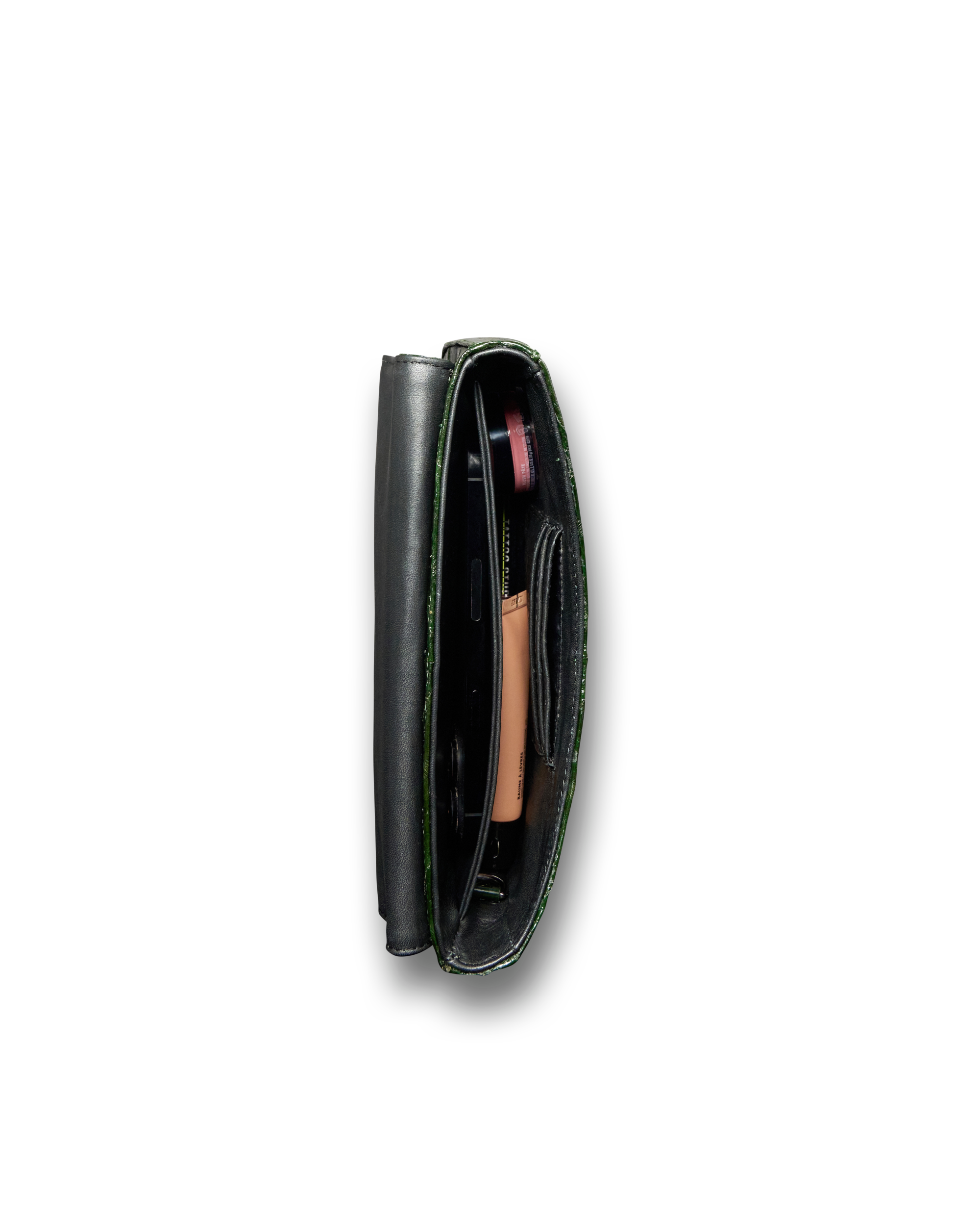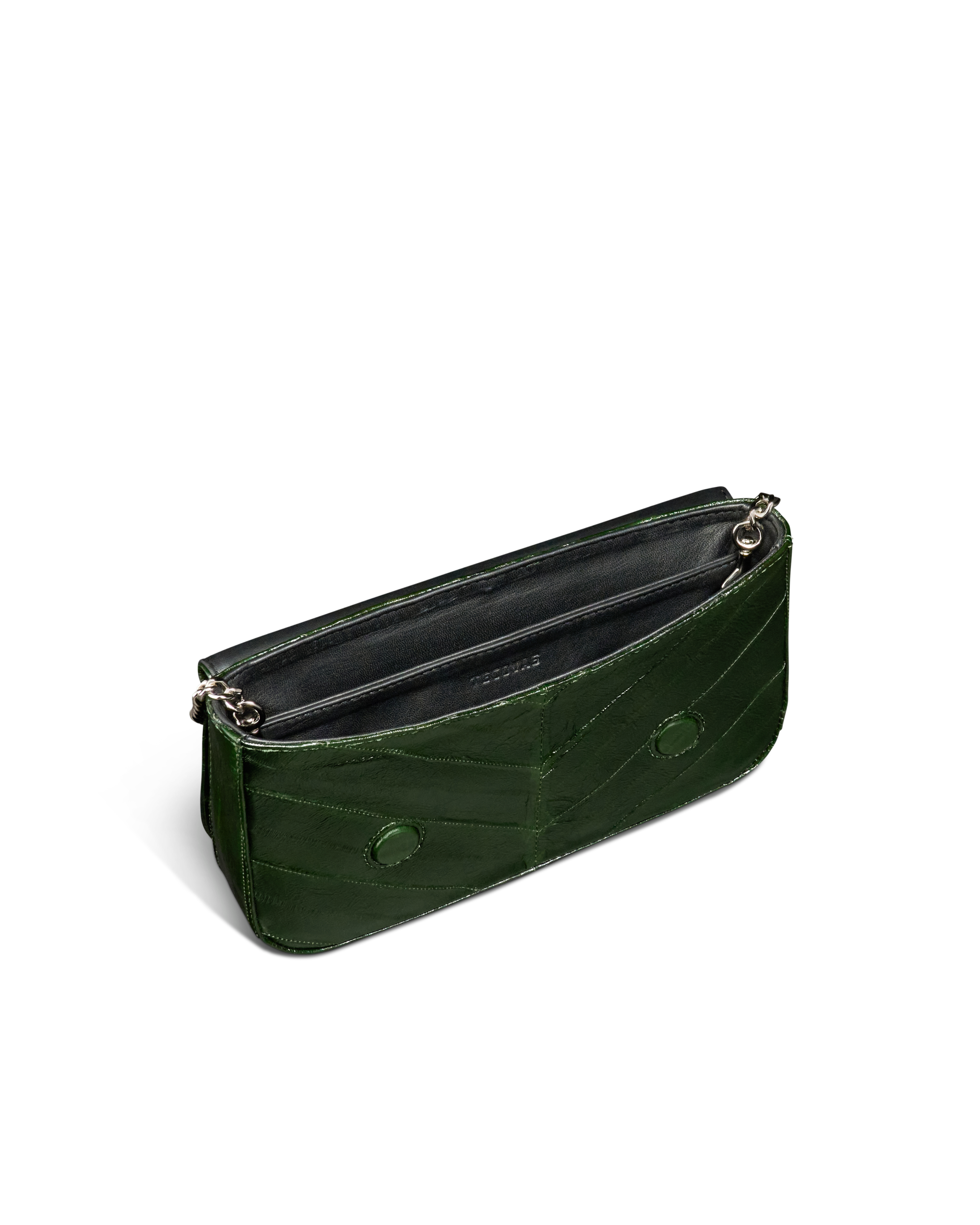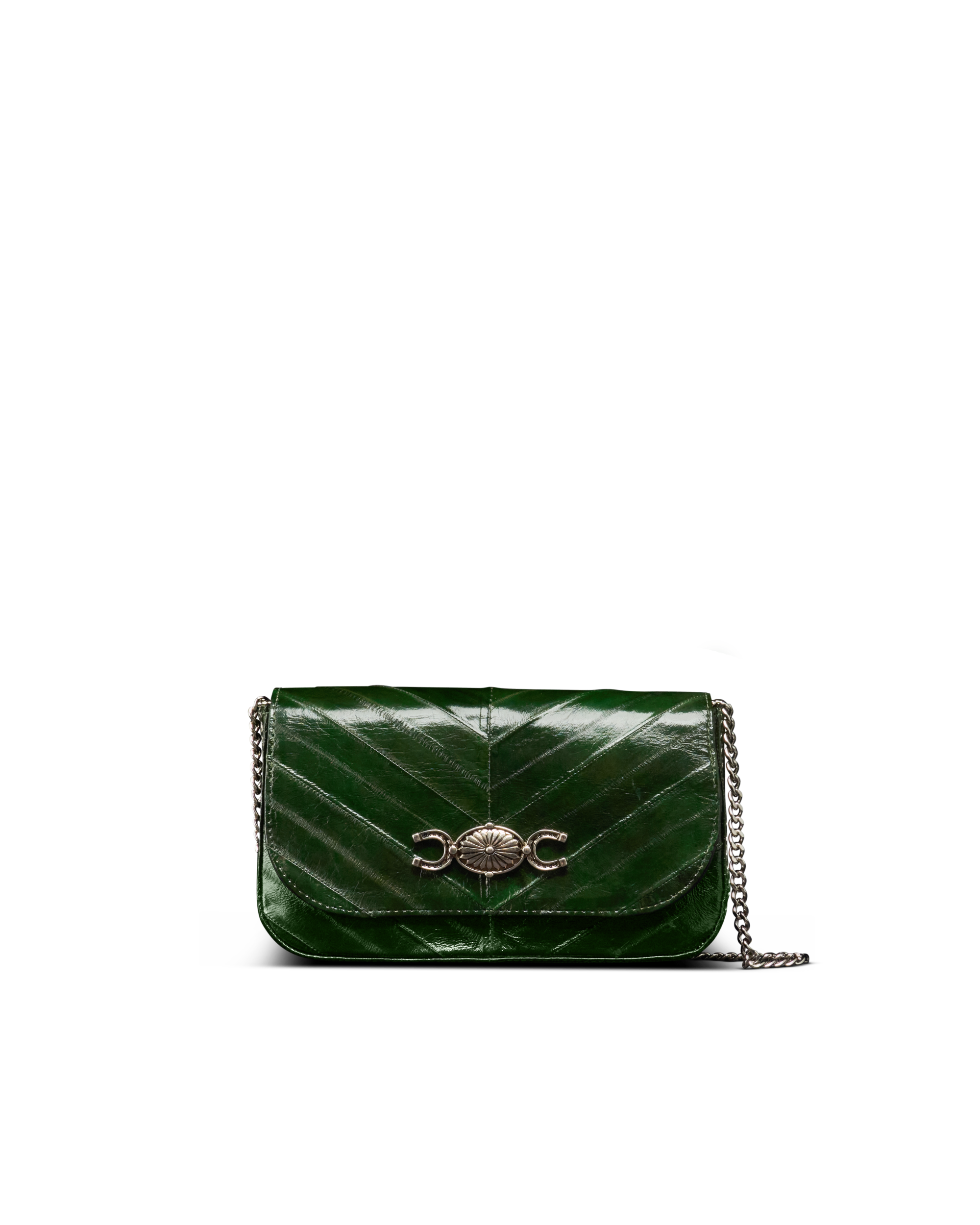 Crafted from glossy eel leather and finished with a custom horseshoe concho, this clutch blends heritage charm with modern sophistication. Designed to stand out without saying a word, it’s a bold yet timeless piece — perfect for nights out or standout moments.