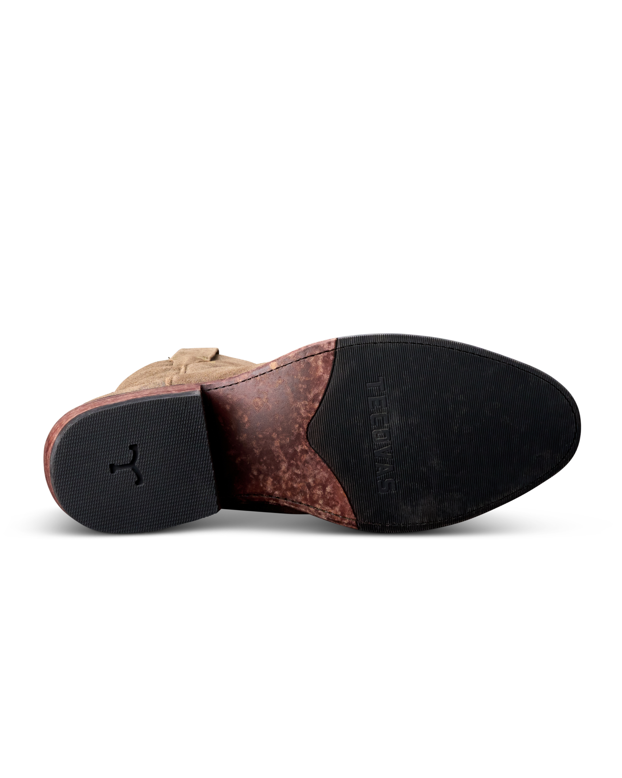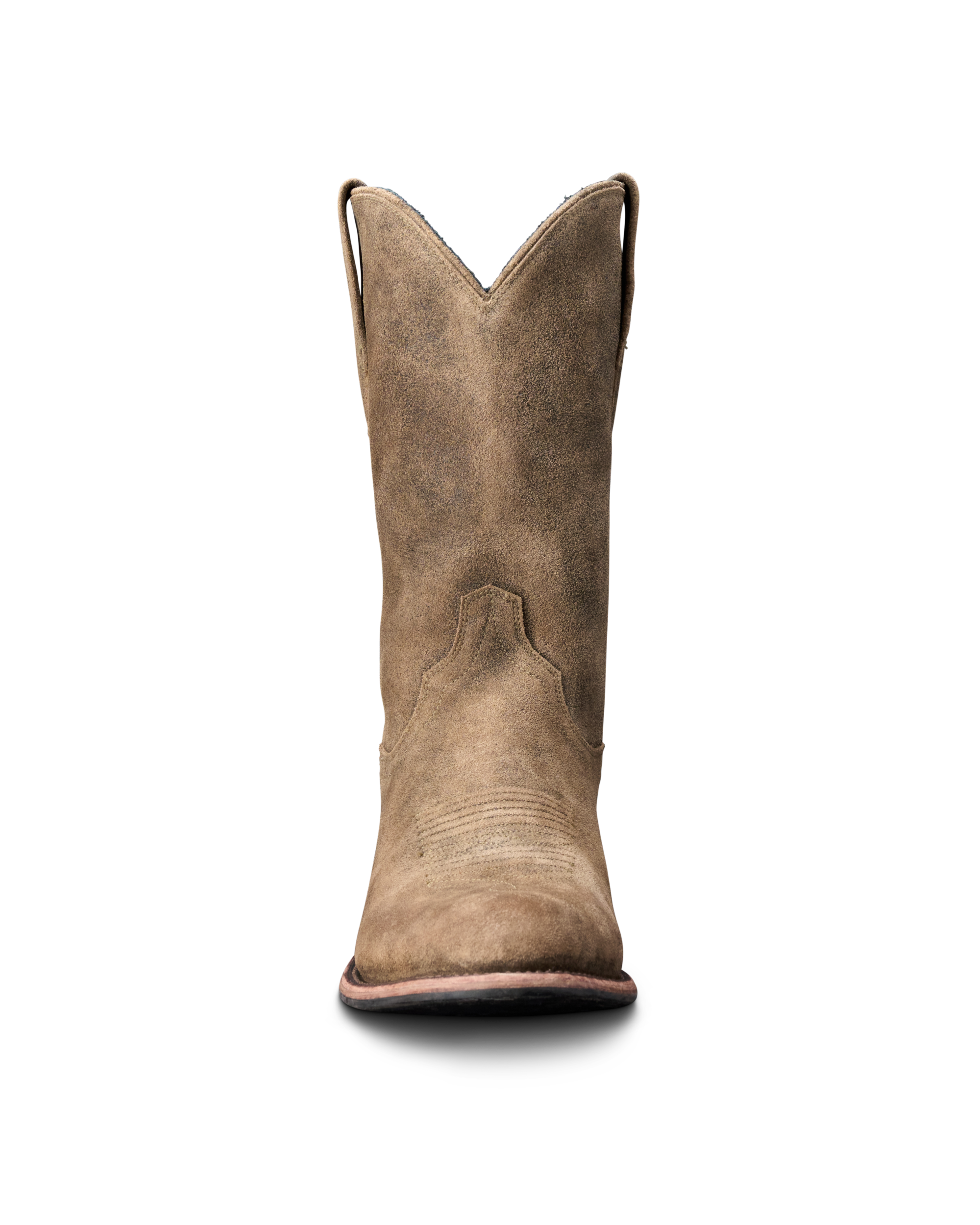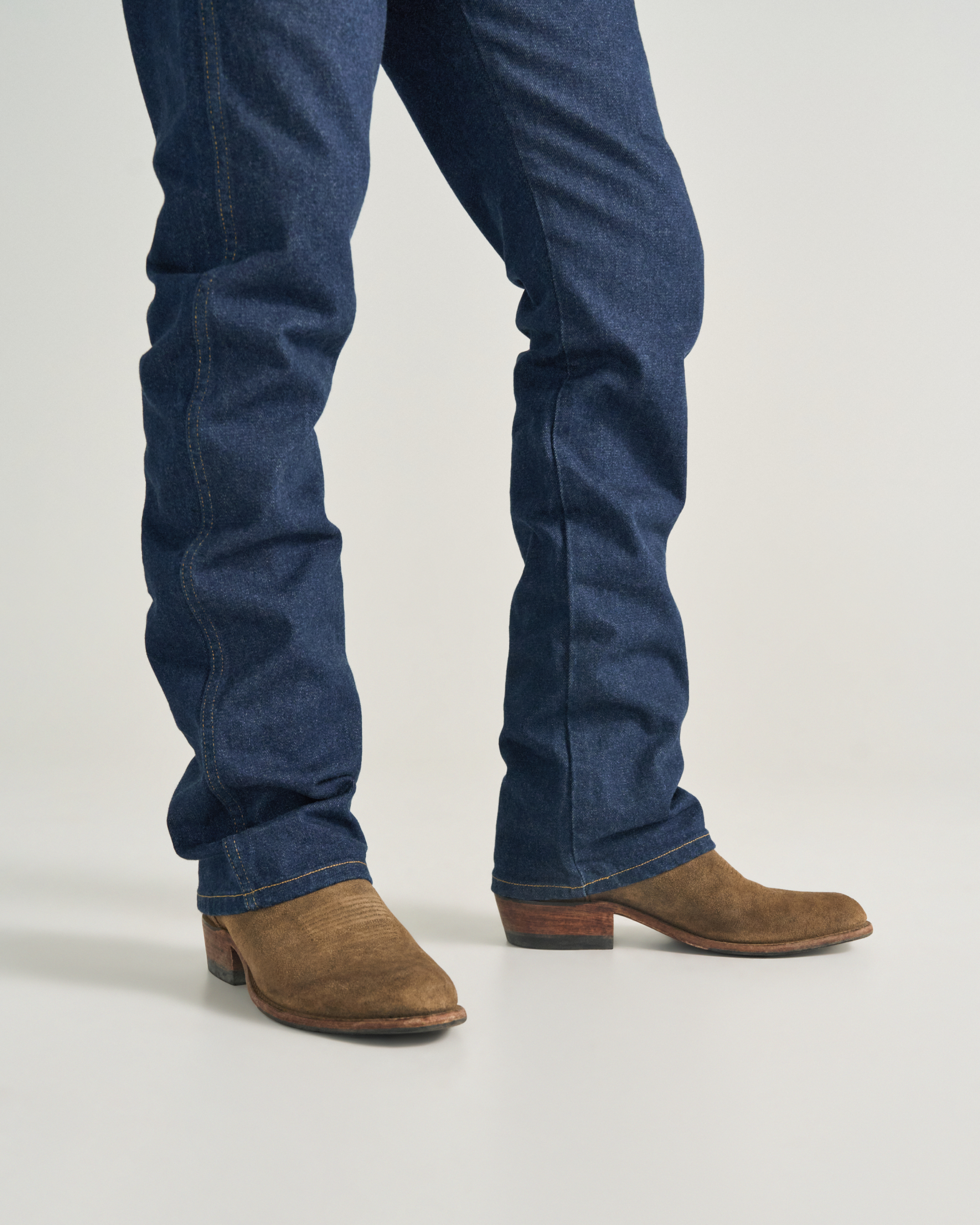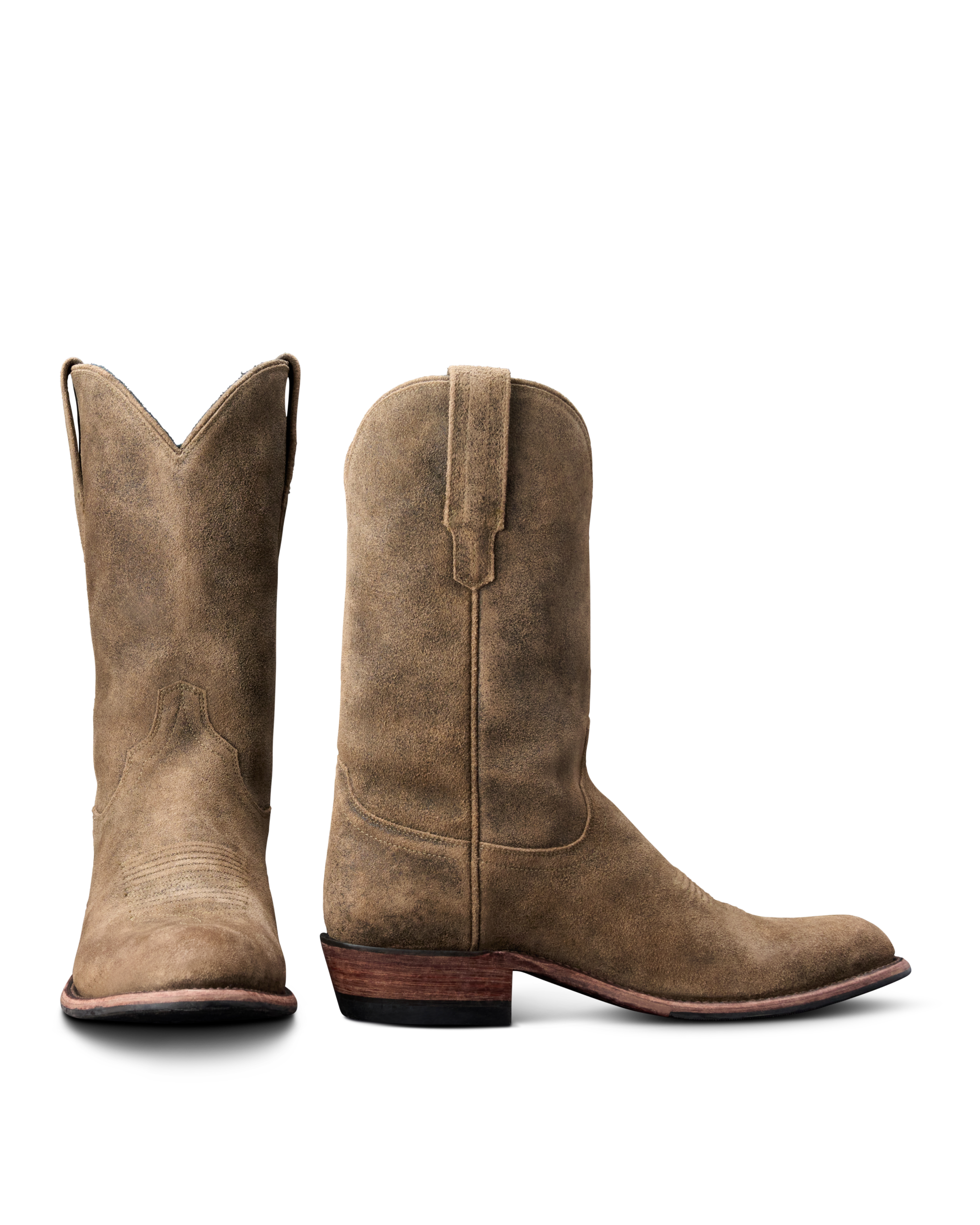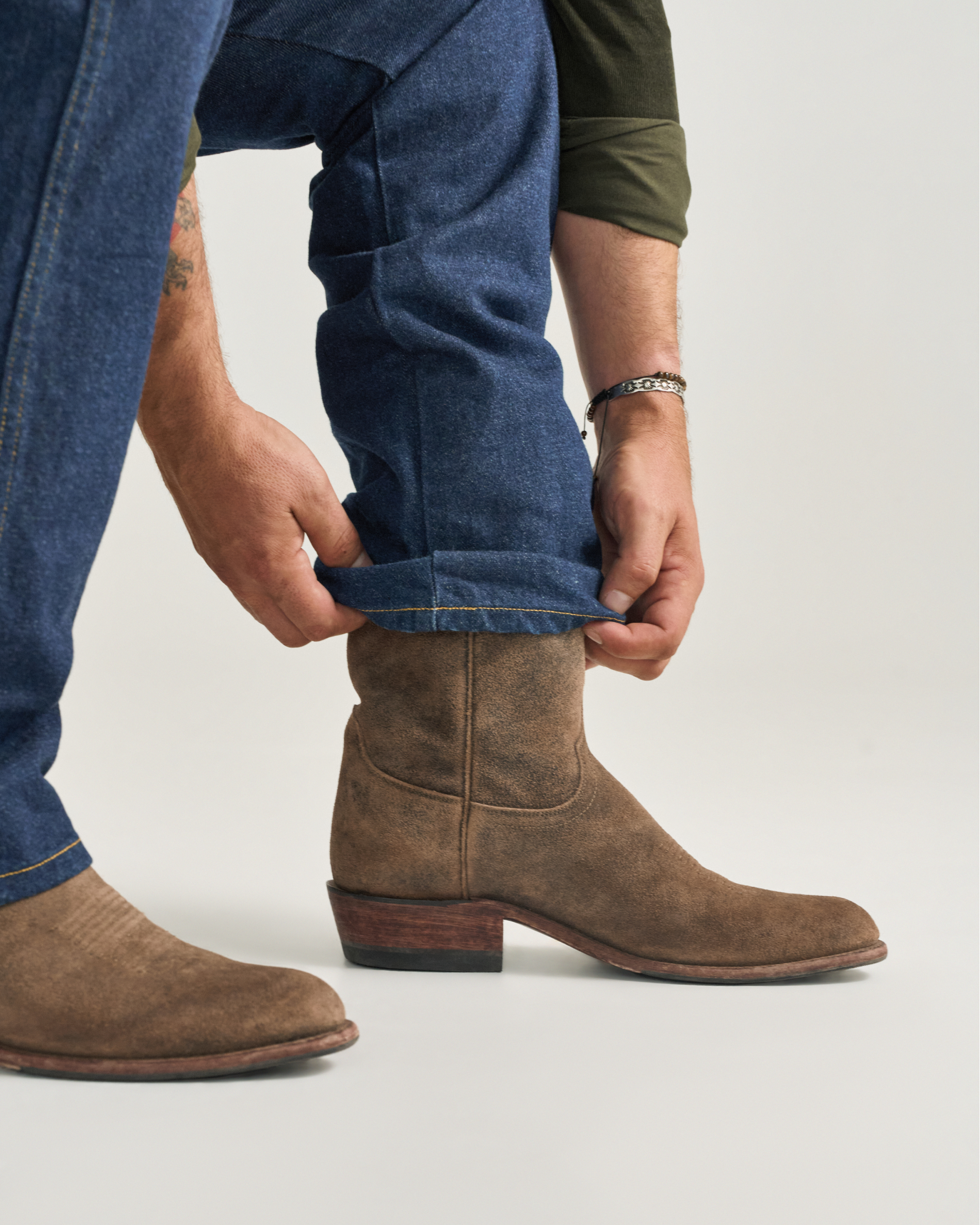 The Johnny in Gravel and Vintage Midnight are part of our Trailworn Collection and are loaded with Old Western character. Wrapped in water-resistant, vintage suede, the entire boot has been stonewashed and tumbled for a distressed, worn-in look and feel that even shows up on The Johnny’s heel and hybrid rubber/leather sole, the edge of which has also been carefully hand-sanded for a touch of added grit. Beyond that, it’s a versatile dress boot that will bring rugged cowboy elegance to all of your exploits.