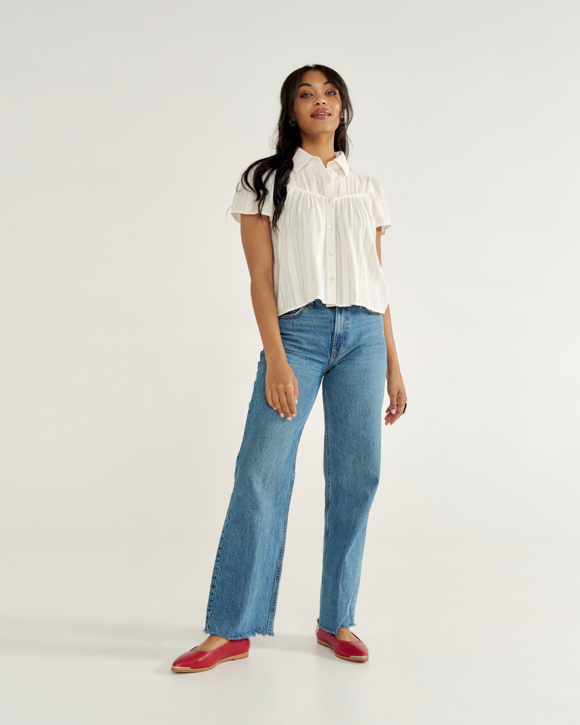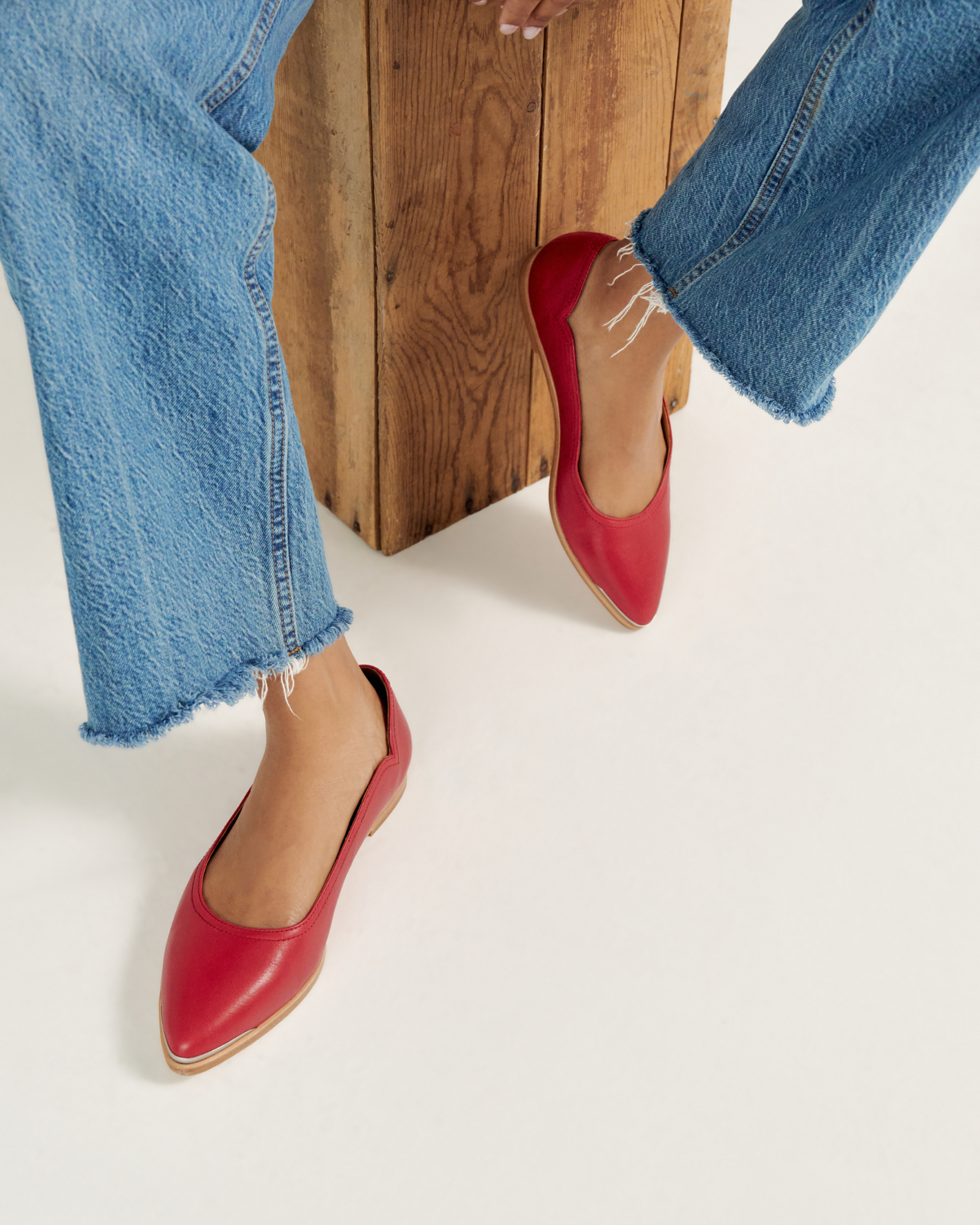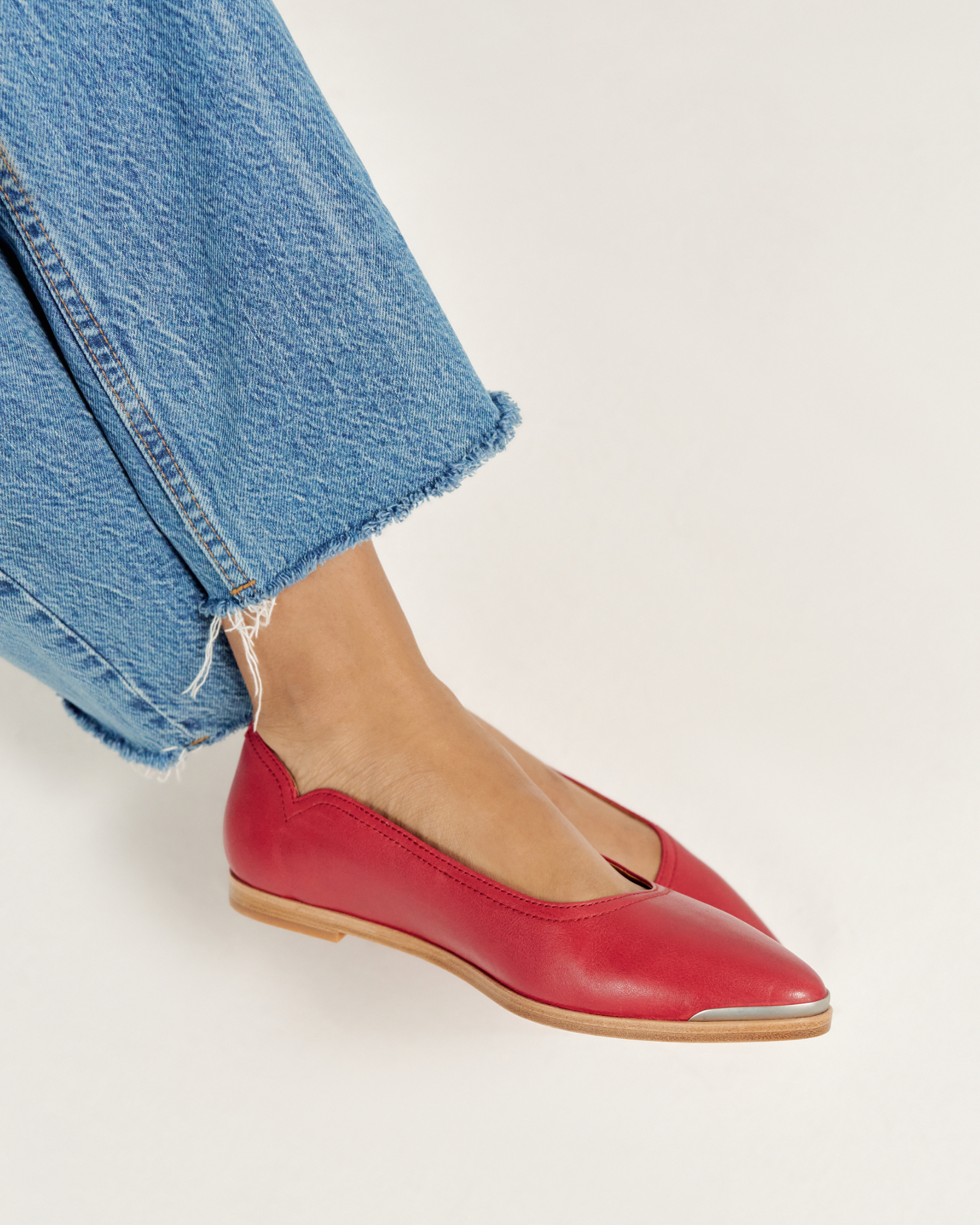 Designed with a flattering toe shape and scalloped details, The Misty is an everyday flat that blends style and function. Thoughtfully crafted for all-day wear, its cushioned insole delivers comfort, while premium leather ensures durability. Subtle Western-inspired lines add character and help prevent ankle rubbing for a smooth fit. Versatile by design, it’s perfect for work, a night out, or warm-weather wear.