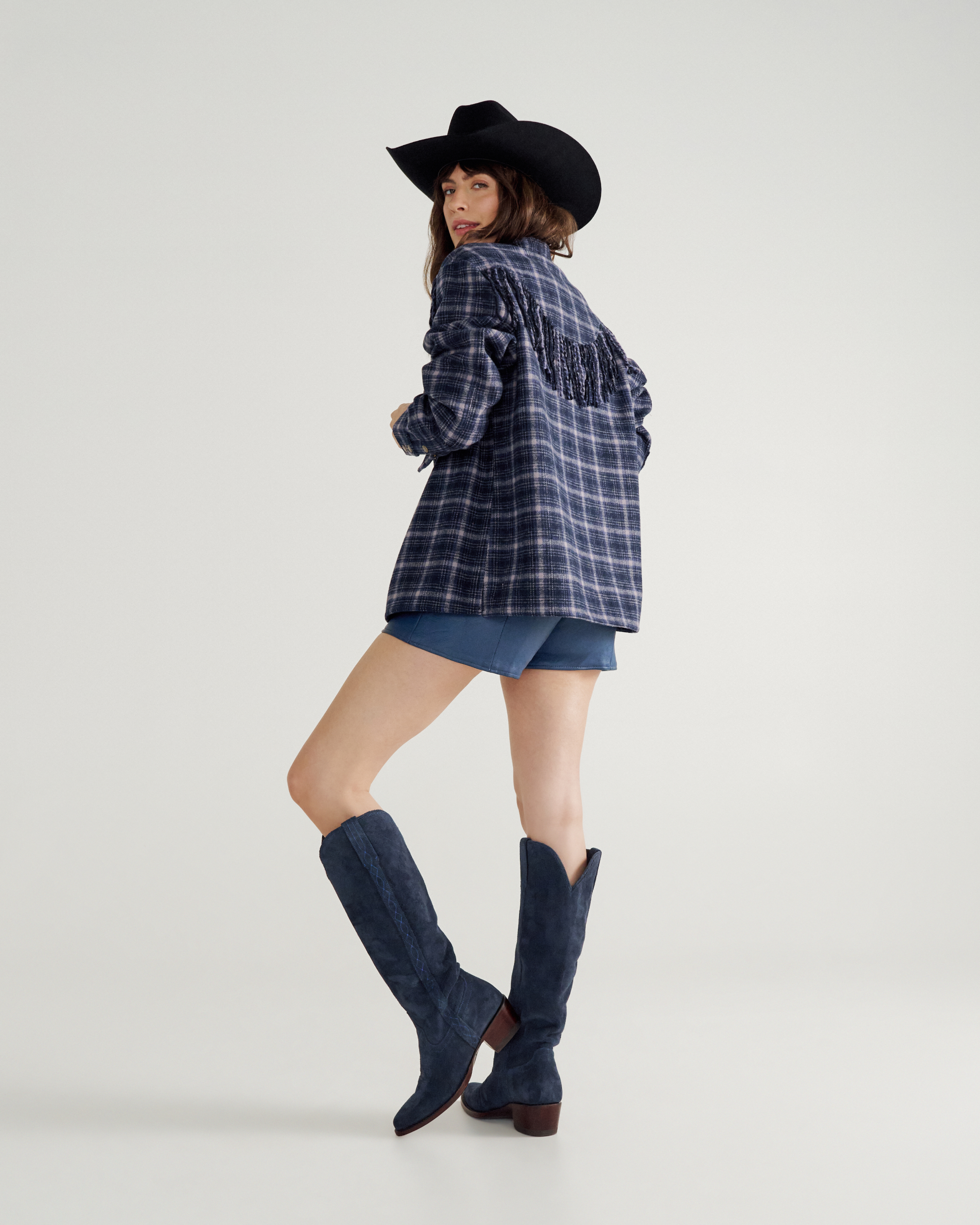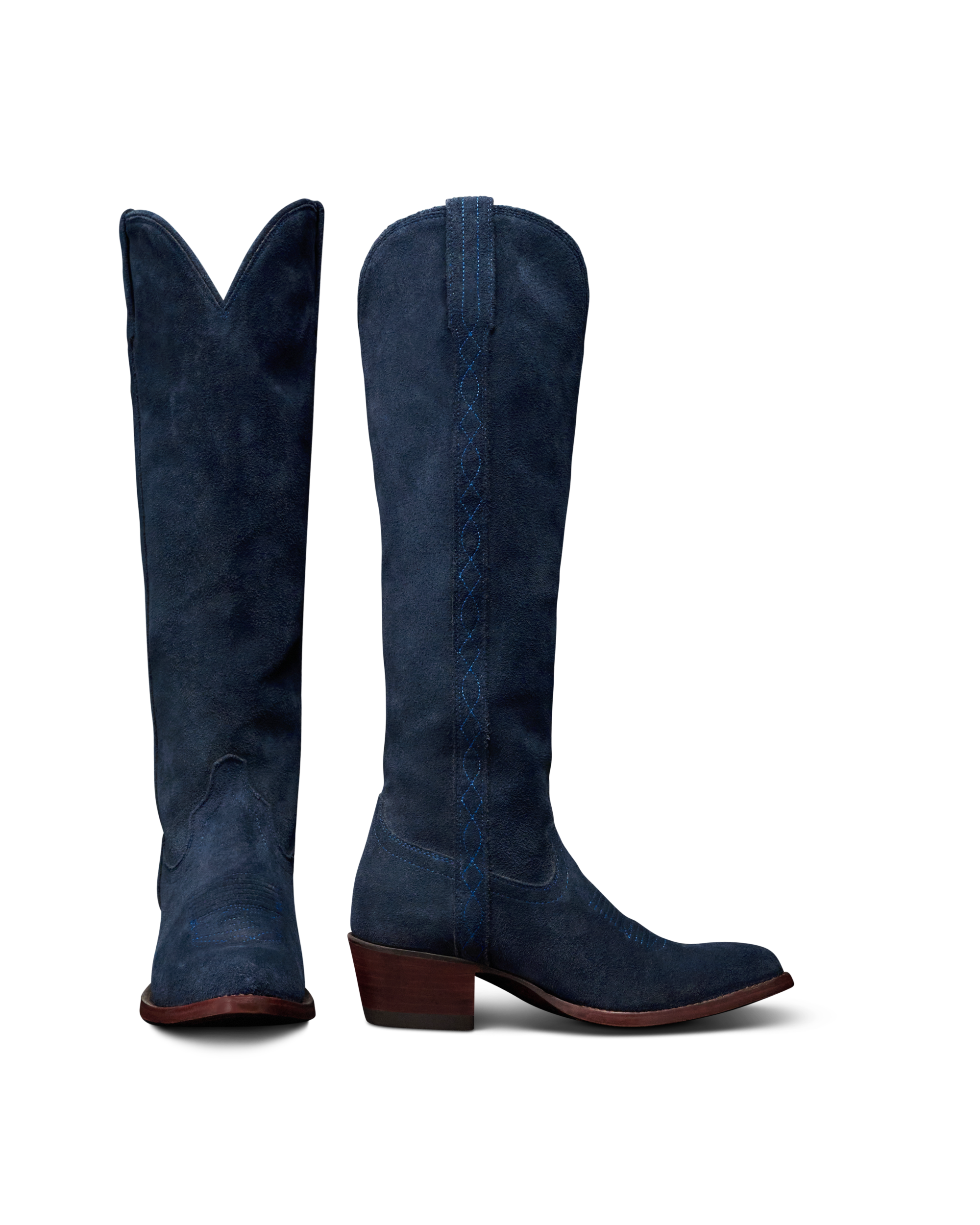 Stride confidently in The Abby Cavalier, a sleek boot that with endless versatility. Its clean 17” shaft, inspired by classic cavalier riding boots, offers a fresh take on The Abby. Subtle Western stitch lines run from welt to topline, adding elegant detail that complements the design. Made from suede treated for water resistance, this boot boasts a rich, luxurious look and feel. With a 2” heel and Tecovas’ signature toe bug, the Abby Cavalier elevates your style with timeless sophistication.