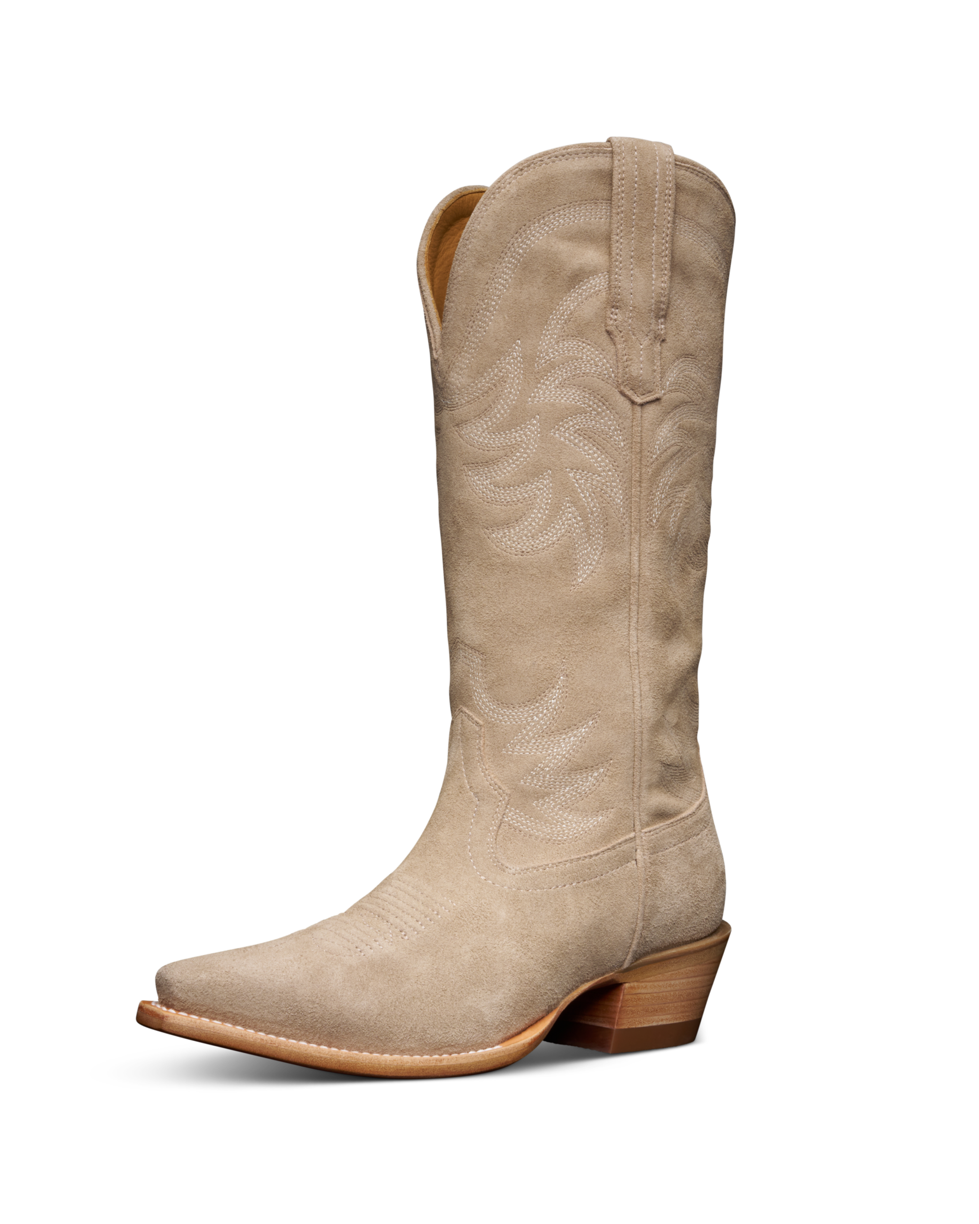 Meet The Annie, our best-selling cowgirl boot. Tall and timeless, a beautiful tonal stitching pattern adorns its 14” shaft, the top of which features a deep scallop for a comfortable, flattering fit. A fashion-forward snip toe leads the way and our signature toe stitching rounds out a classic look open to a wide range of styling possibilities. These premium boots are not to be missed and will age beautifully over time.