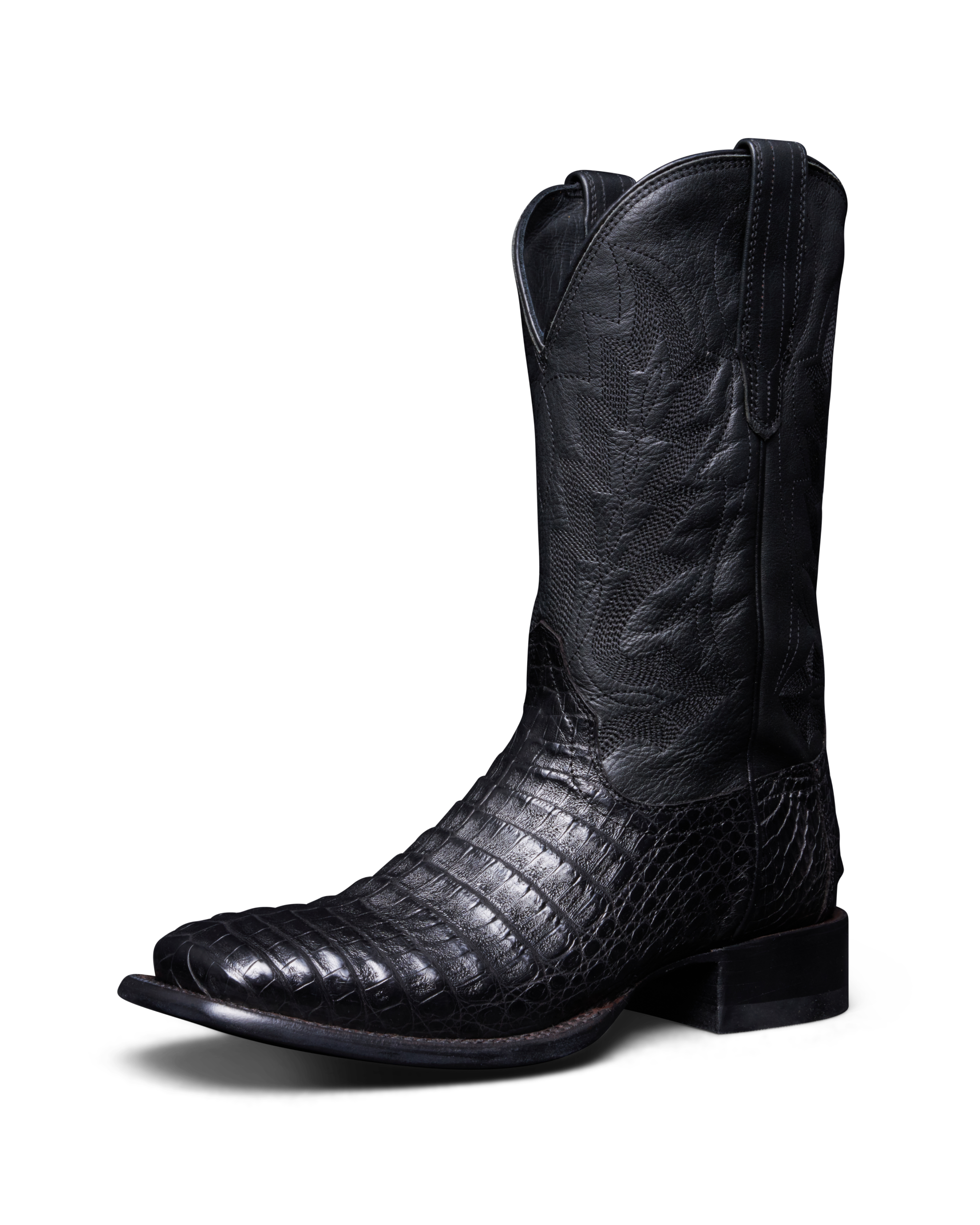 Part of the alligator family, caiman showcases statement-making scales that have a distinct depth of texture. Smaller than its larger brethren, there’s nuance and appeal aplenty in each unique hide. Exotic boots are an investment, and caiman is a wise one, with the durability to become a future heirloom with proper care.