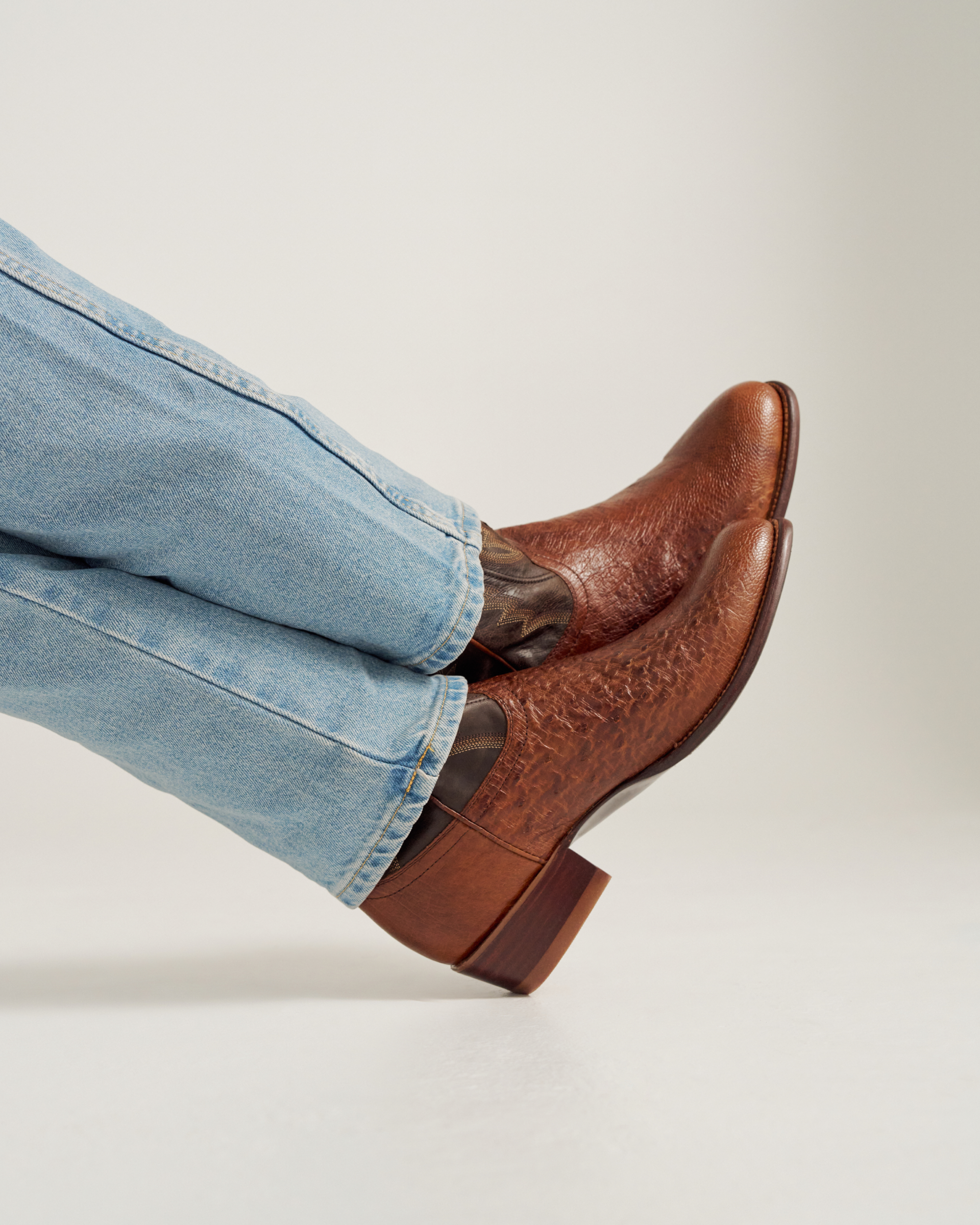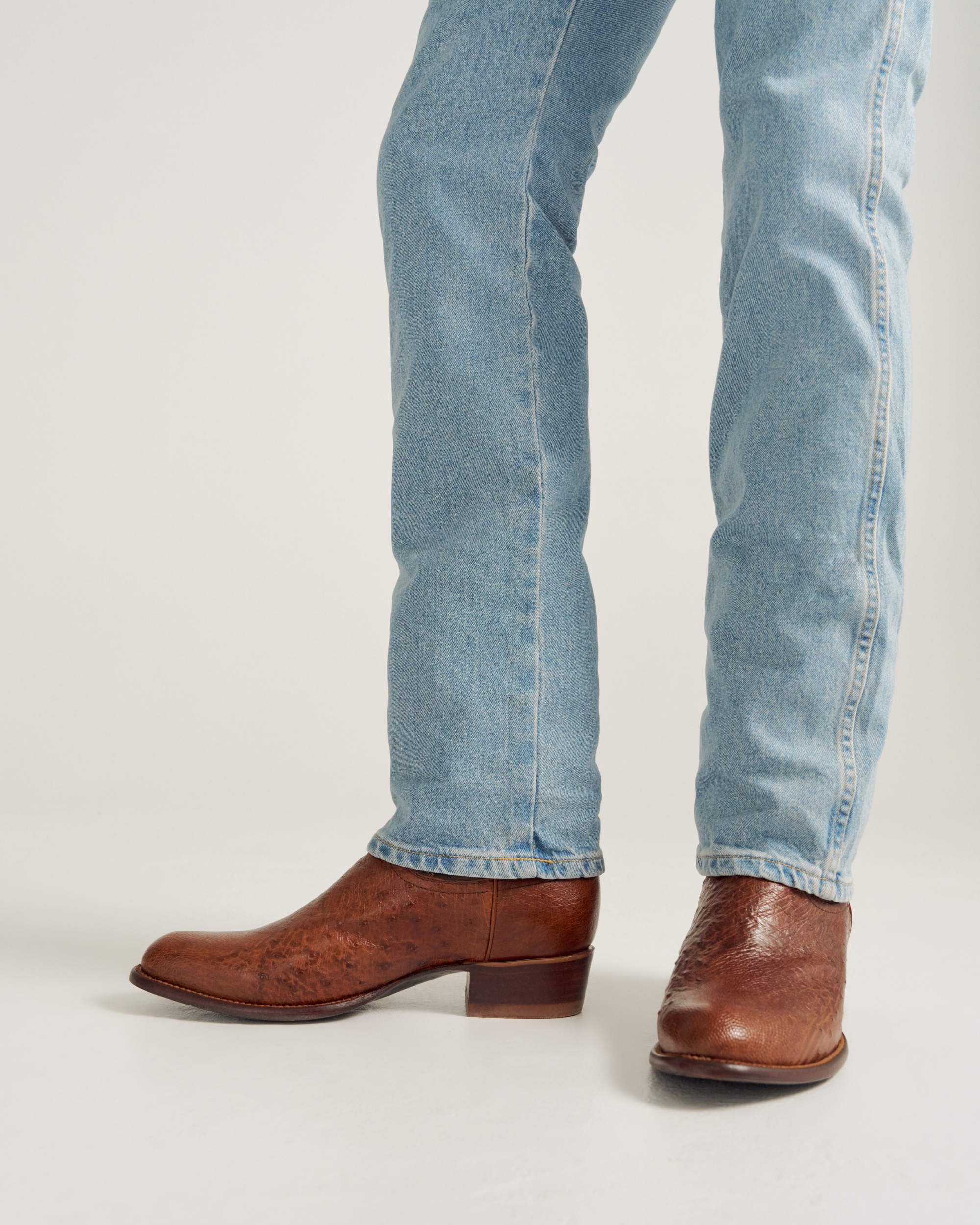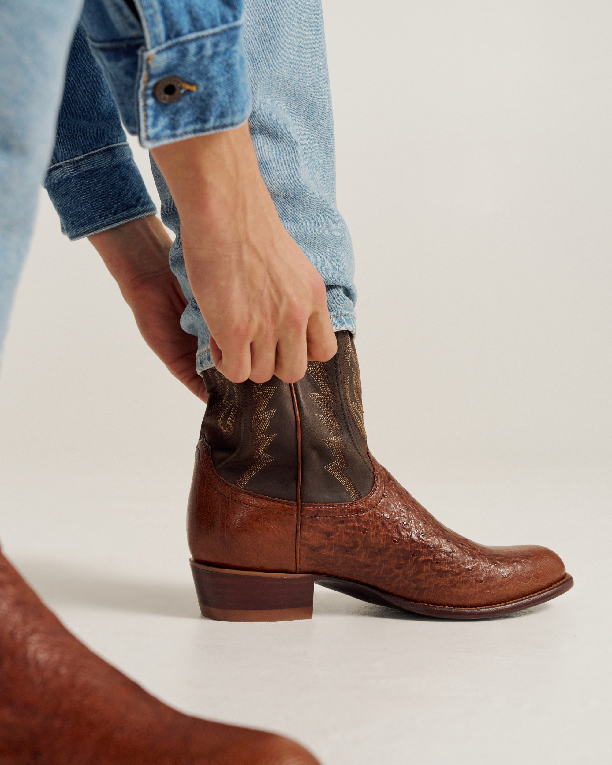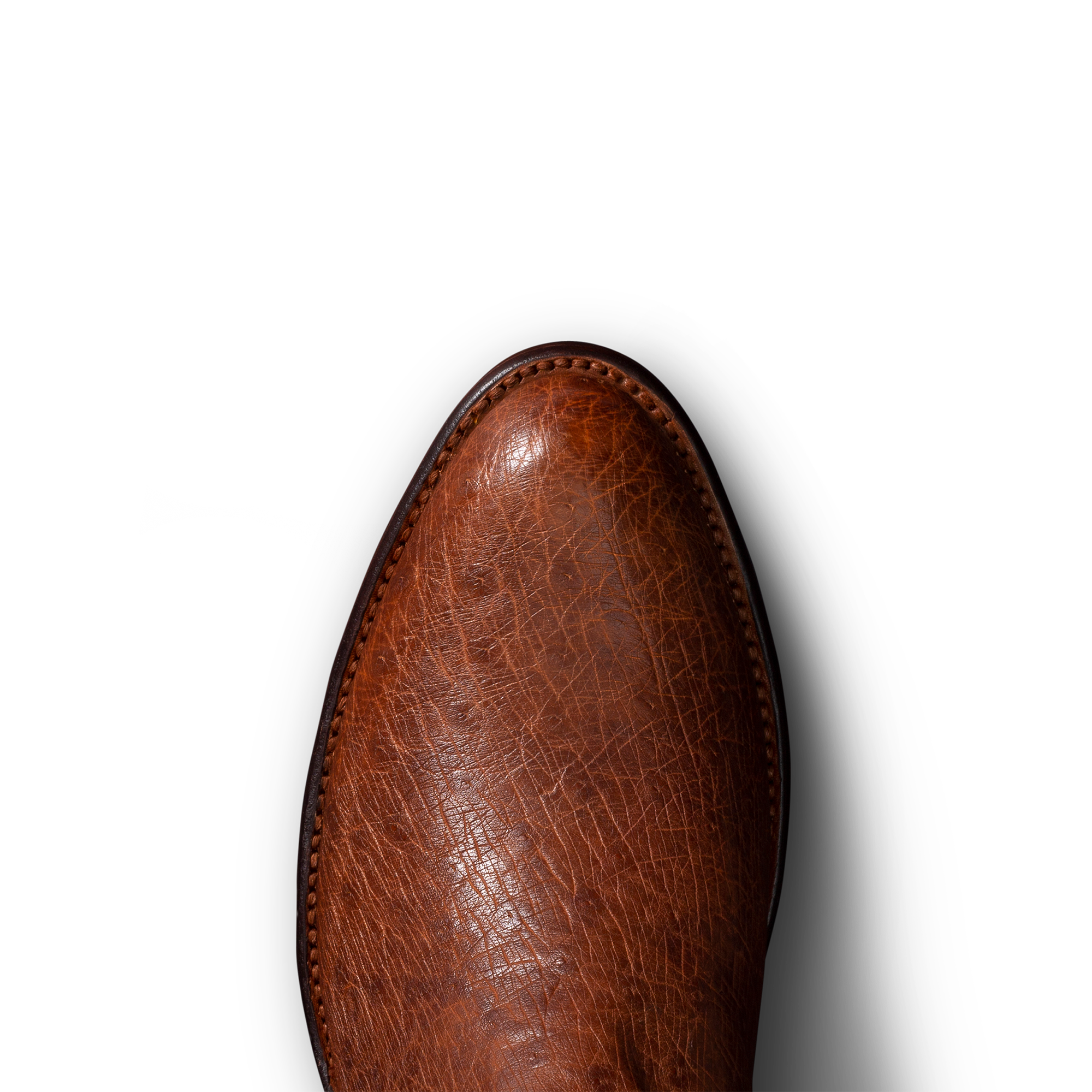 Sourced from the sides and belly of the ostrich hide, smooth ostrich leather is a worthy alternative to the bolder full-quill style. More subtle, with rich, intricate texturing that comes to life when dyed, our most accessible exotic hide is a fan favorite for good reason — each pair of smooth ostrich boots are truly unique.