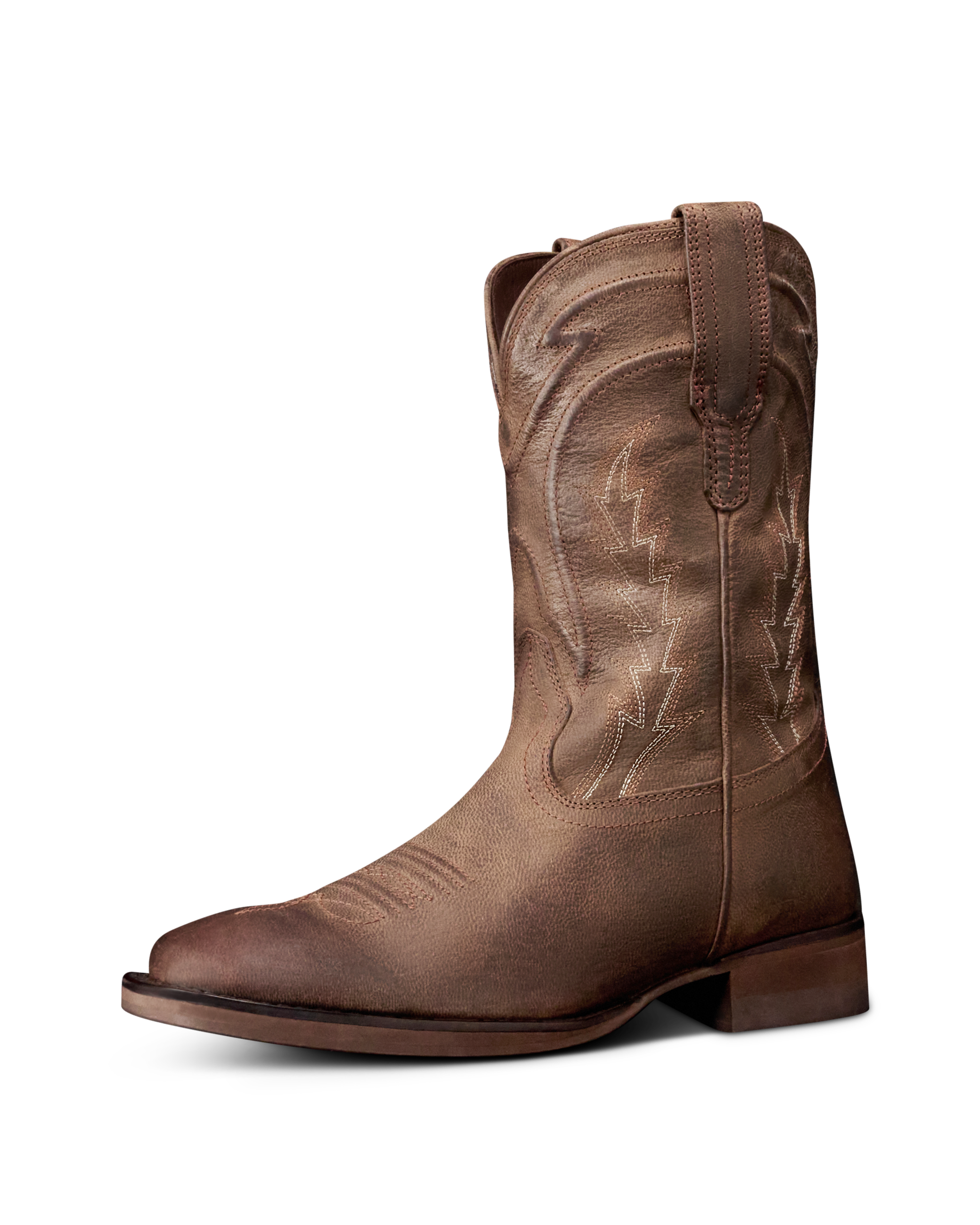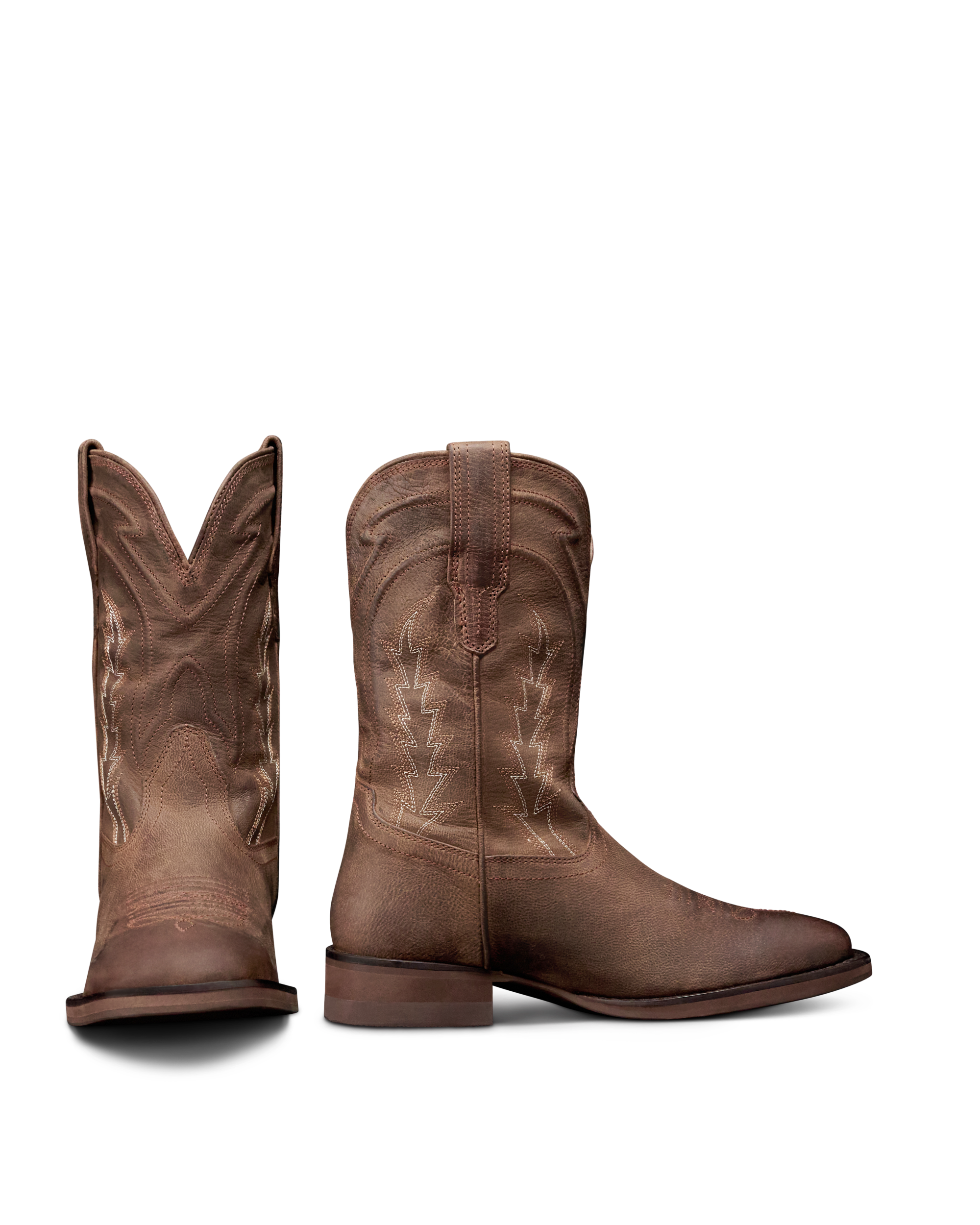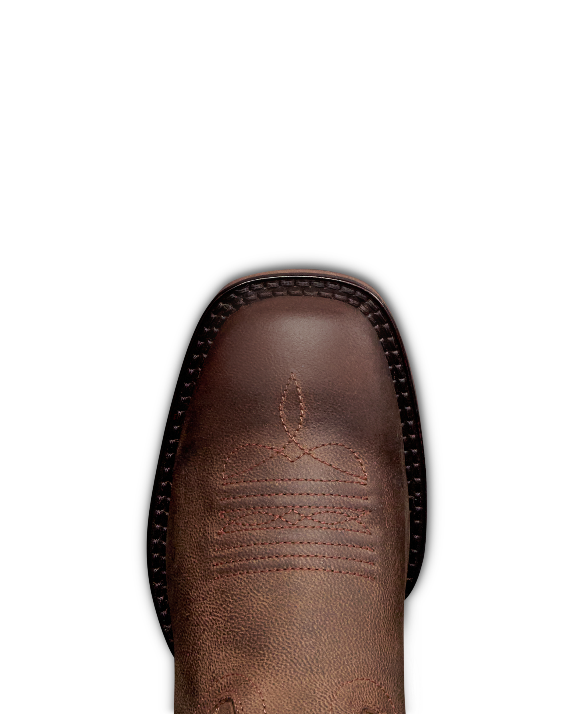 8.5" genuine leather shaft with leather collar, breathable mesh lining, and classic Western stitching