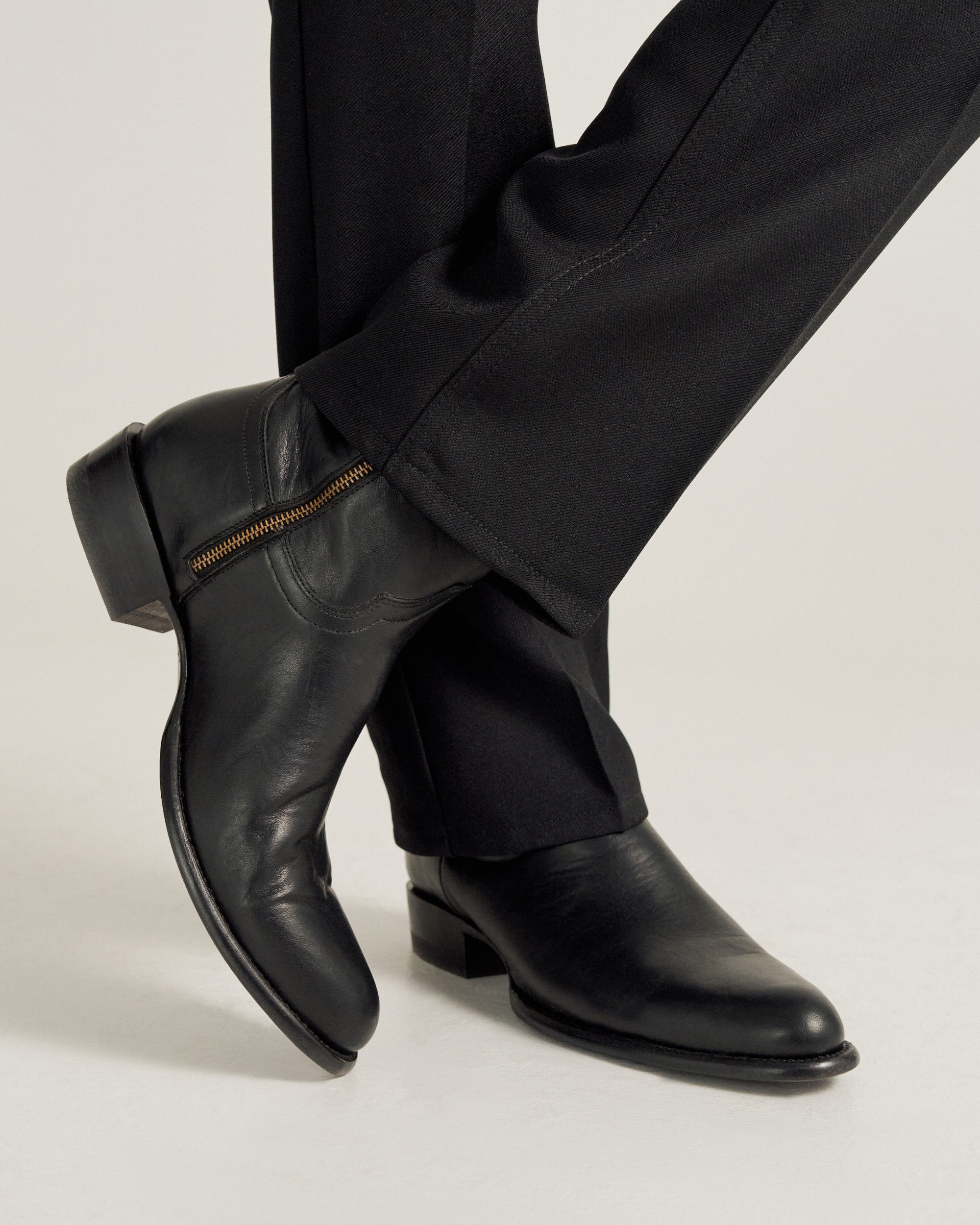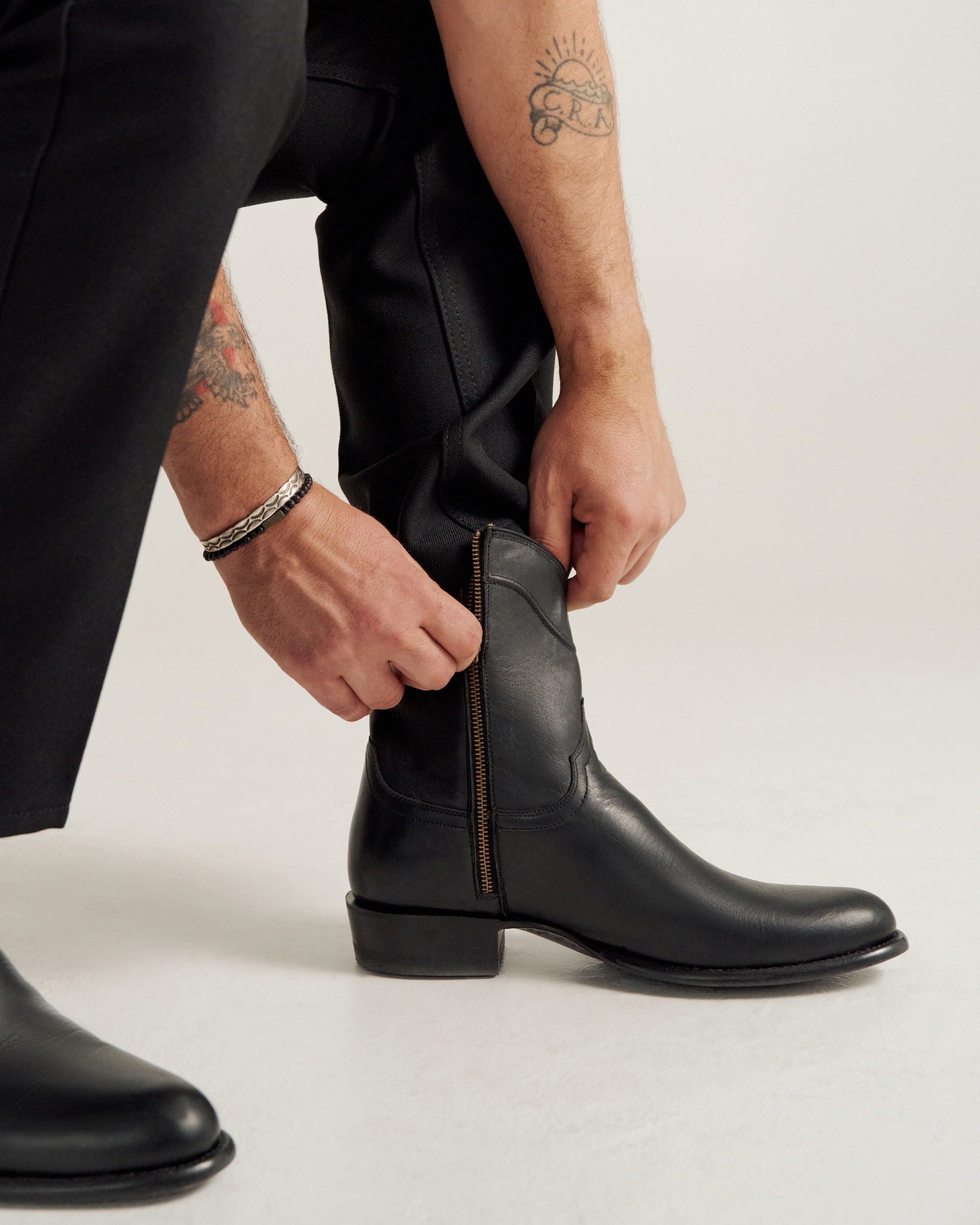 Designed for effortless versatility, The Dean is a modern take on the classic western boot, blending refined craftsmanship with impressive functionality. Its slim-cut 8” shaft is tailored for a sleek fit under fitted jeans and pants, while a discreet side zipper guarantees effortless wear while maintaining authentic Western style. Crafted with premium leather inside and out, this boot features a round toe for a timeless silhouette and a durable leather sole. Dressed up or down, The Dean is built for wherever the day takes you.