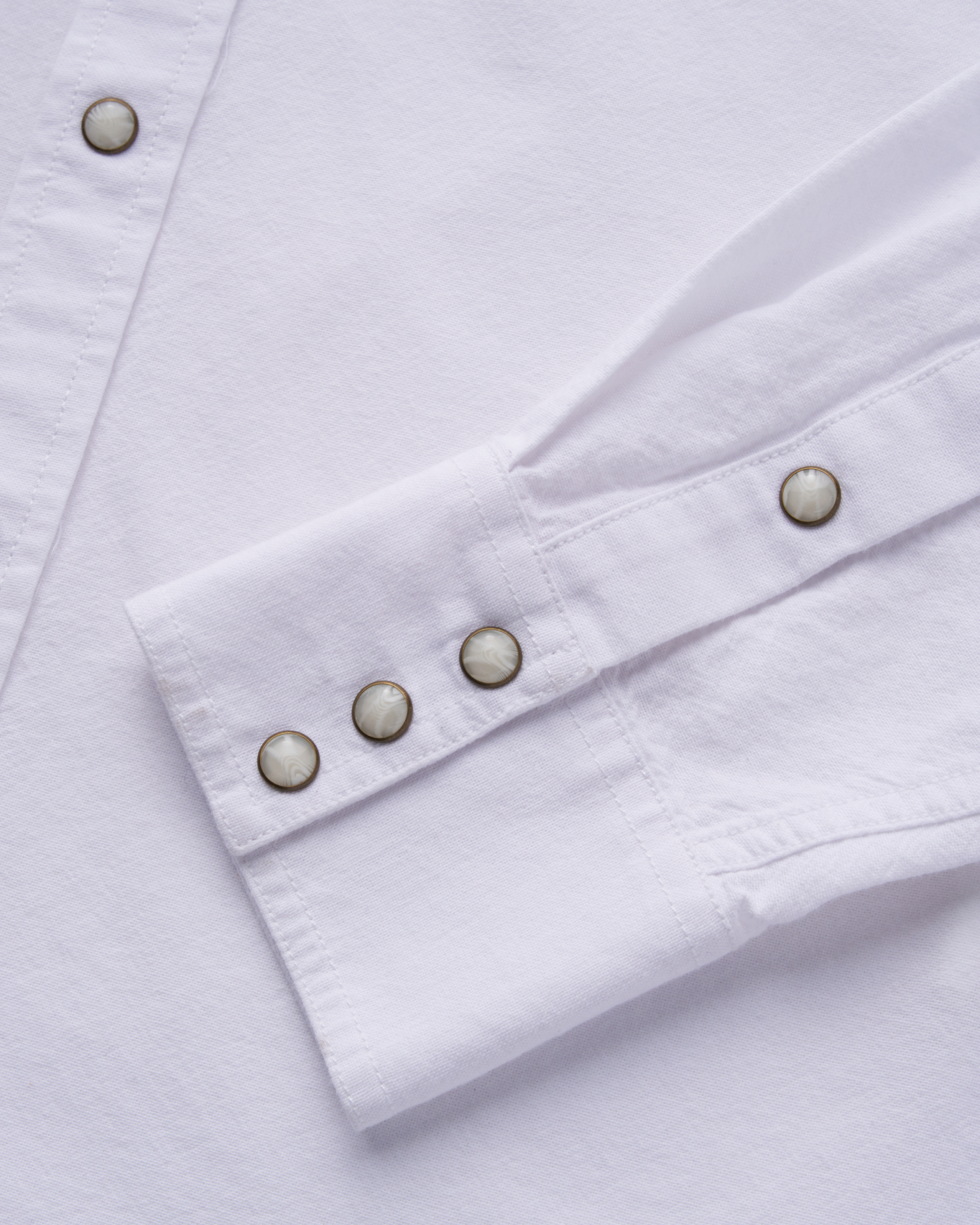 A timeless Western staple meets classic Americana in the Sawtooth Oxford Pearl Snap. Made of durable, 100% cotton Oxford cloth and stitched into our traditional Sawtooth Pearl Snap design, this dependable shirt will make a clean impression at the office, church, or a night out on the town. Sawtooth double-snap pocket flaps add distinctive flair and our brass-accented, faux horn pearl snaps complete the classic Western look.