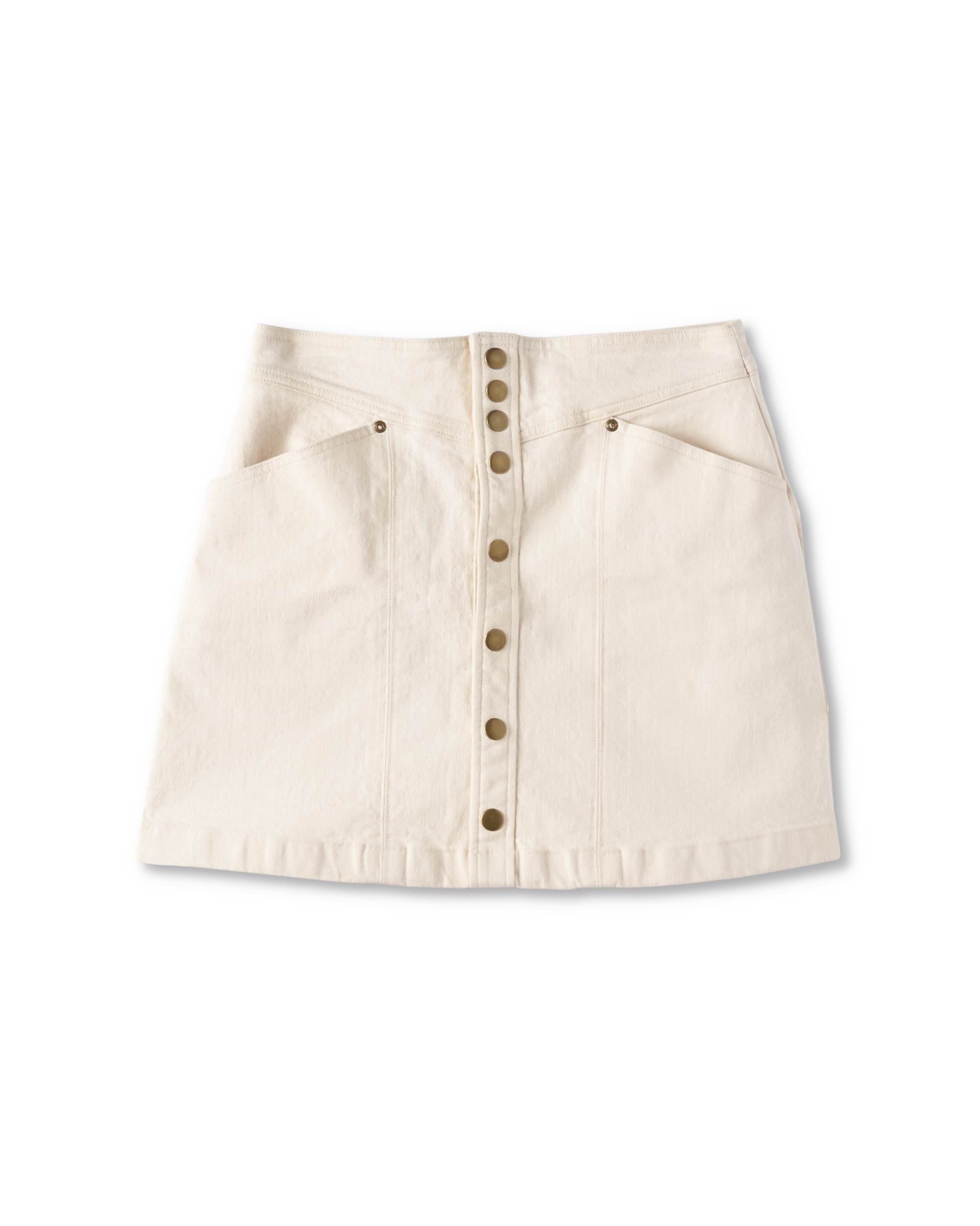 Effortlessly flattering, the Denim Skirt blends style and comfort with natural denim and a hint of elastane for the perfect stretch. Its A-line silhouette offers a universally flattering fit, while the button-front design and functional pockets add charm and practicality. Ideal for warm weather, it pairs seamlessly with boots for an easy spring-to-summer look. Complete the set with the matching jacket for a stylish, Western-inspired ensemble.